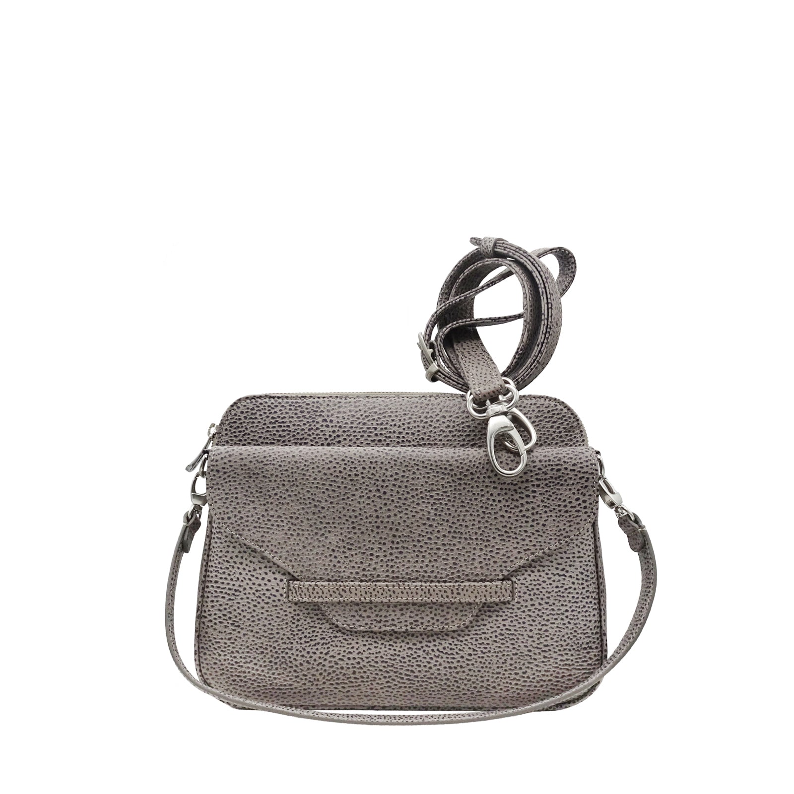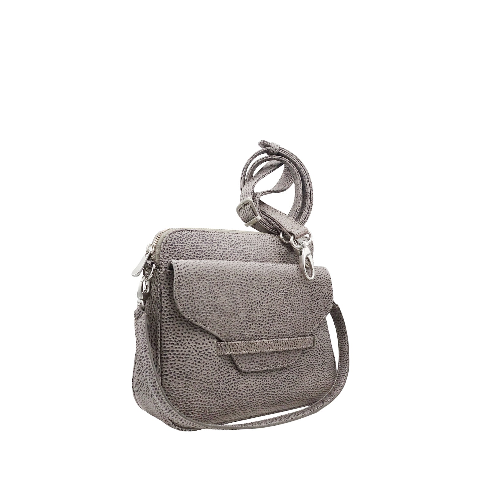 Die Handtasche REMY ist ein kleines Multitalent mit diversen Fächern, einem Henkel und einem längeren, feinen Riemen mit Schnalle. Die Tasche ist mit einem Reissverschluss verschliessbar.
