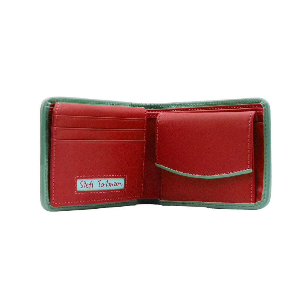- 1 Sichtfach, 7 Kartenfächer 1 Notenfach, 2 Steckfächer, 1 Münz- mit Zettelfach in der Mitte.